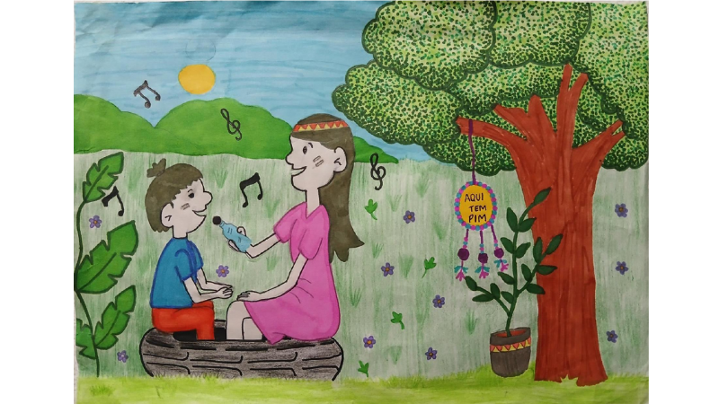 Poderão ser utilizados diferentes materiais para a realização do desenho como lápis de cor, canetas hidrográficas, giz de cera e outros.